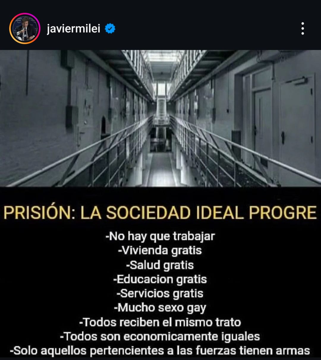 El presidente argentino aportó “La panacea socialista…” en el pie de foto de la publicación en Instagram.