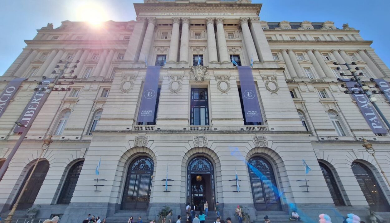 Hace apenas un mes, el Palacio Libertad, que anteriormente llevaba el nombre de Centro Cultural Néstor Kirchner, fue renombrado oficialmente como “Palacio Libertad, Centro Cultural Domingo Faustino Sarmiento”. Según la resolución publicada en el Boletín Oficial, el cambio responde a la intención de “recomponer valores básicos y fundacionales de la República”.