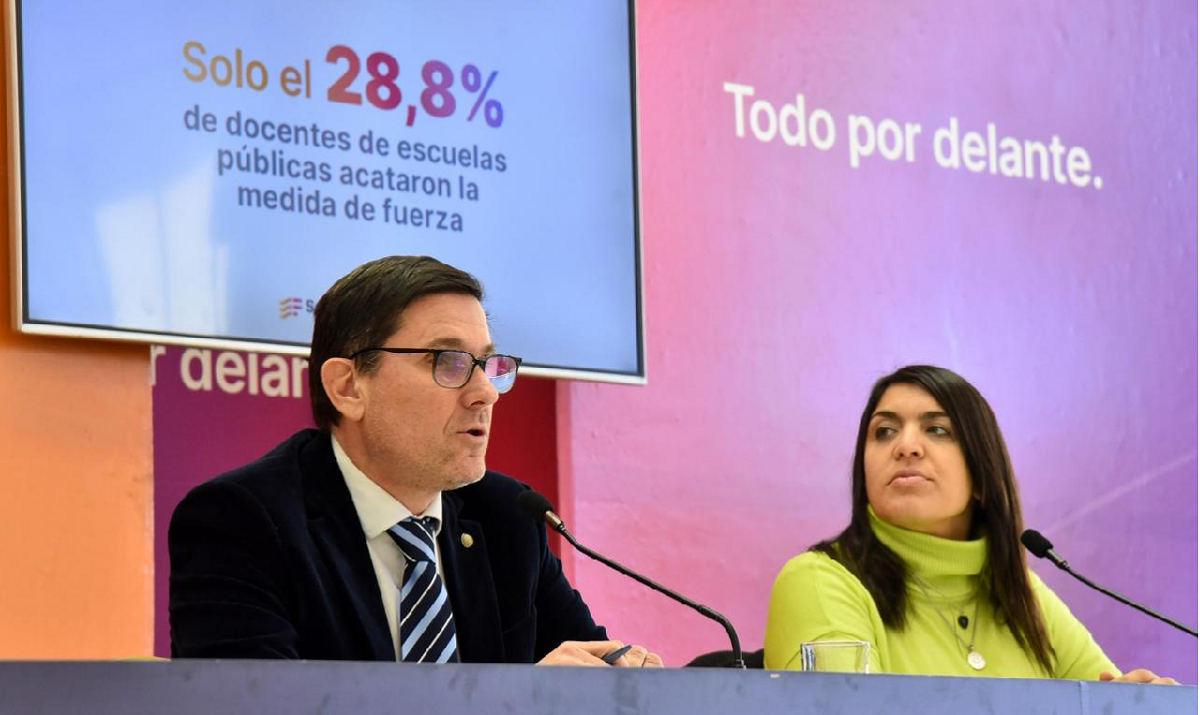 Por su parte, la subsecretaria de Innovación e Integración Digital, Ana Bacolla, detalló: “Al relevamiento lo hicimos a través del sistema Mi Legajo, que es el mismo que utilizamos en las oportunidades anteriores” y en ese sentido informó: “El universo total de los docentes que debían llenar la declaración jurada son 57.336 personas y hasta el momento relevamos que presentaron su declaración jurada 40.823 trabajadores. Estos números, vistos en porcentaje de adhesión, representan una adhesión al paro del 28,8 % y una no adhesión del 71,2 %”.