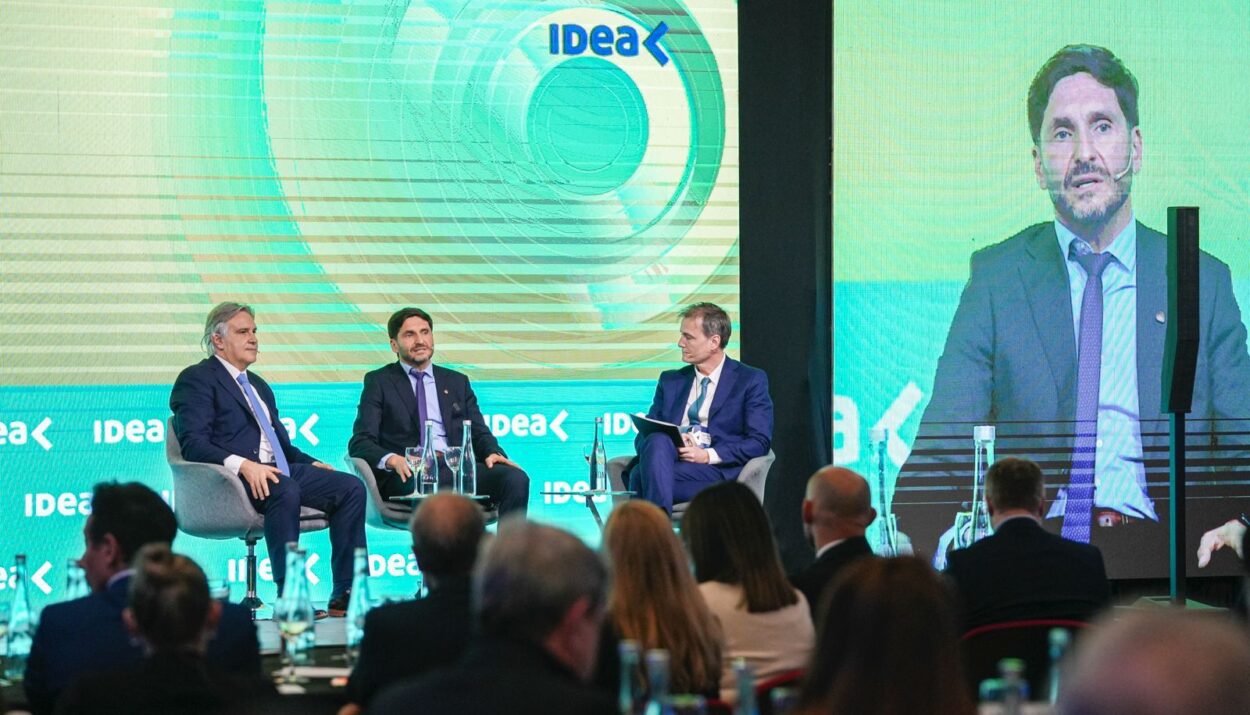Los gobernadores de Santa Fe, Maximiliano Pullaro, y de Córdoba, Martín Llaryora, participaron este martes de Experiencia Idea Rosario, donde intervinieron en el panel “La visión de la política”, desarrollado en la Bolsa de Comercio de Rosario.