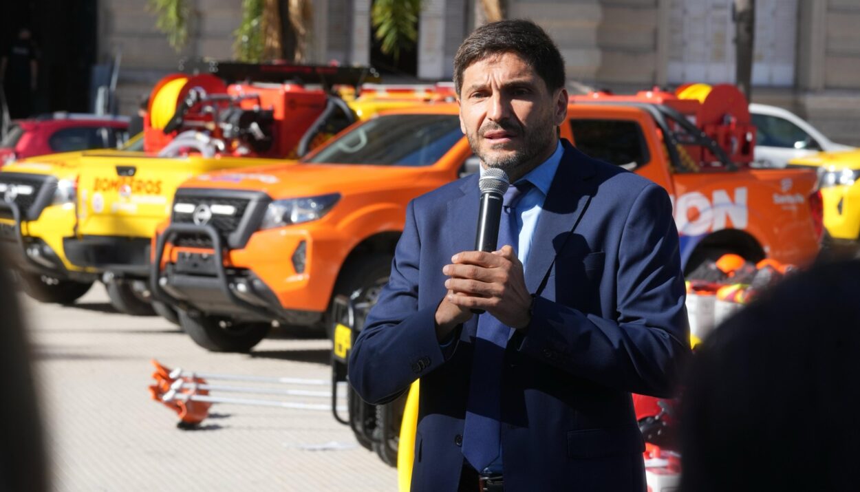El gobernador Maximiliano Pullaro encabezó este miércoles la entrega de nuevo equipamiento a Bomberos Voluntarios de la provincia, destinado a combatir incendios forestales. Se trata de una importante inversión que alcanza a un total de 37 asociaciones distribuidas en todo el territorio santafesino.