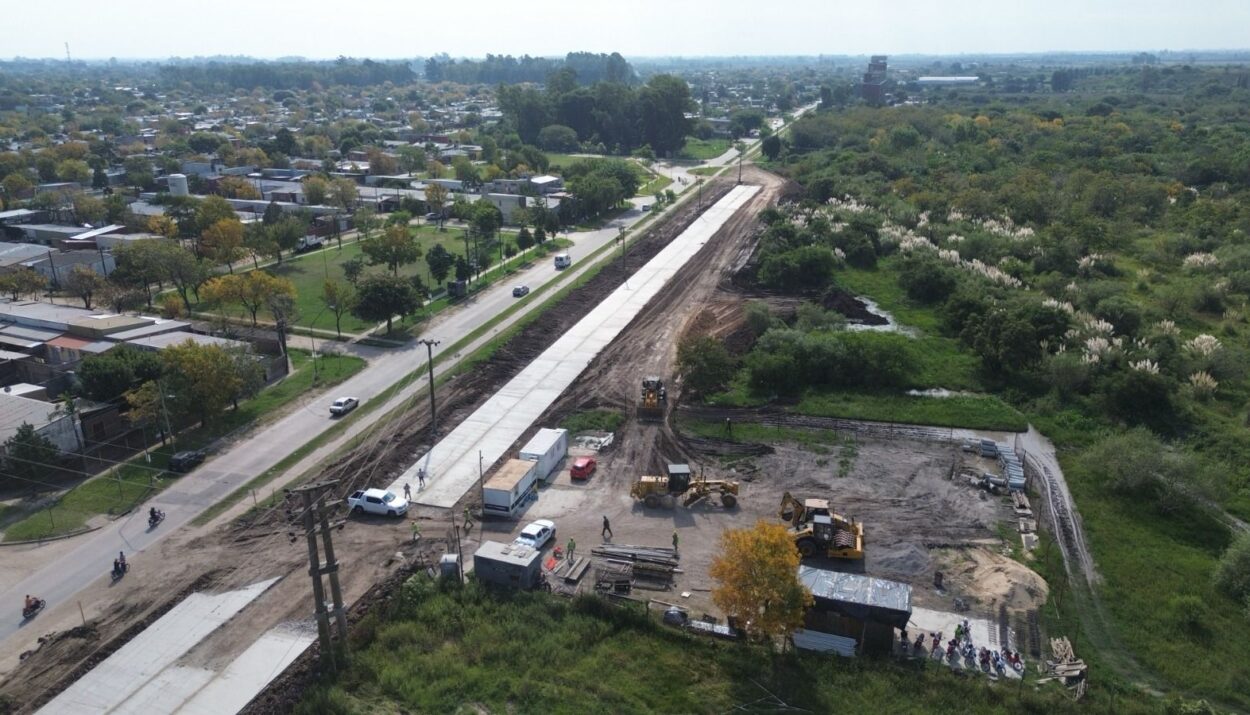 * Pavimentación de calle Larrea (90 %): se avanza con la pavimentación en el tramo comprendido entre las avenidas Blas Parera y Peñaloza. La obra se extiende a lo largo de 1.250 metros y está llegando a su etapa final. Esto incluye el corredor principal, la ejecución de cordón cuneta y veredas, así como mejoras en todos los sistemas de desagüe, con el objetivo de solucionar problemas históricos de anegamiento y deterioro vial.