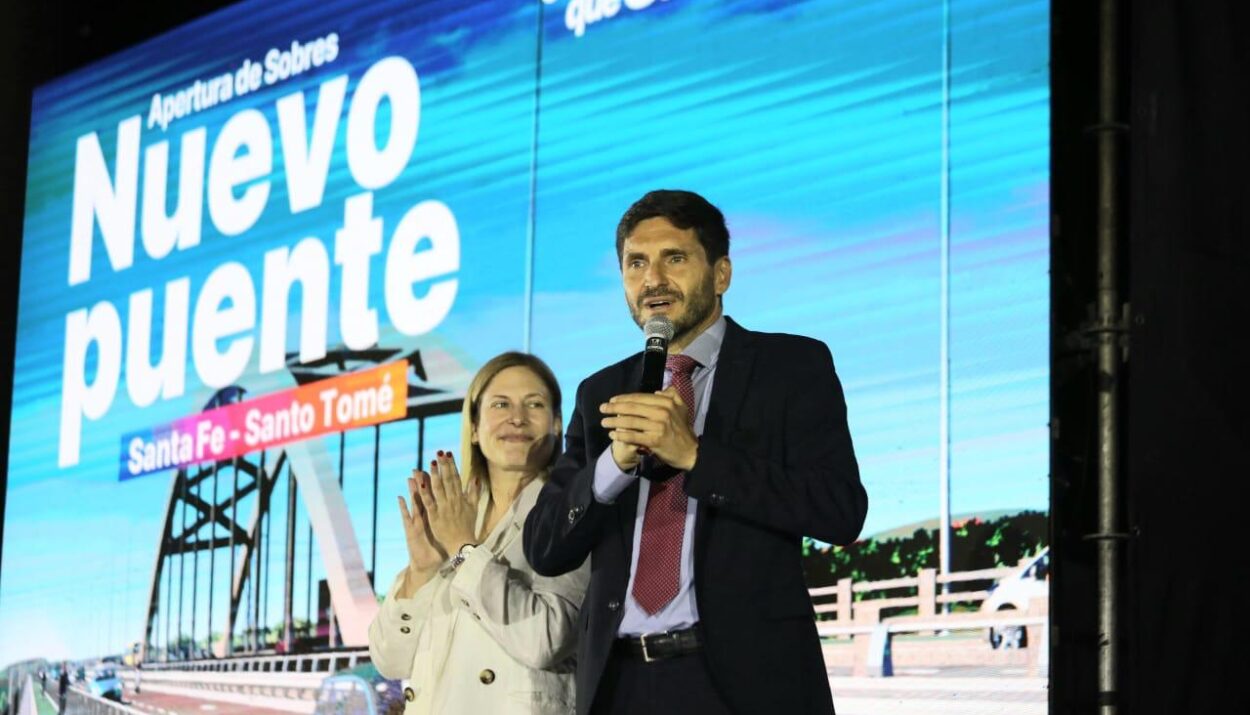 El gobernador Maximiliano Pullaro abrió este viernes los sobres con las ofertas económicas para la construcción del nuevo puente Santa Fe-Santo Tomé, en la que el Gobierno provincial invertirá más de $ 37.500 millones. Para su ejecución se presentaron 10 empresas oferentes.