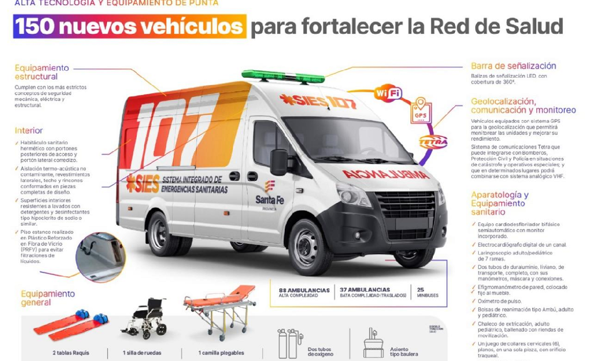 El pliego contempla la compra de 88 ambulancias de alta complejidad, 37 de baja complejidad, para traslado de pacientes; y 25 minibús, que serán destinados a la Secretaría de Logística Integrada y Articulación de Redes (SeLIAR) del ministerio. Dentro de las unidades que tendrán mayor equipamiento y complejidad, ocho serán 4×4, para garantizar el acceso en caminos del Norte provincial. La apertura de sobres se realizará el 21 de agosto a las 10, en Casa de Gobierno.